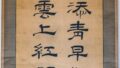 書き物軸物 和歌20230909調査有賀長収 長収 和歌 軸物 2024.09.01 撮影:四国大学 / 分類:20230909-J27 祝言 長収和らくをこゝろのたねと国の名もともにことはの道よりやたつ 語注・気付き ○長収 有賀長収(あるがちょうしゅう)? 江戸時代中期後期の歌人。有賀長伯の孫。