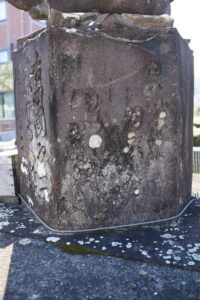 【鑑賞】この歌は現在も石井警察署の前に立ち続けている地蔵尊の台座に彫られている。地蔵尊が立つ石井警察署北側を通る旧道は「伊予街道」とも呼ばれ、現国道192号線が通る前はまさに石井町(村)の「ちまた」(辻)だったのである。この狂歌のおもしろさは、尊く神聖なるお地蔵さんをこともあろうに「辻君」に見立てたところにある。これはお地蔵さんを馬鹿にしたのではなく、より親しいものとして見立てたのである、狂歌では高貴なる物、神聖なる物、近づきがたい物、高尚なるものを、逆の俗なるもの、親しい物、として見直すところに生ずる笑いがよく歌われる。